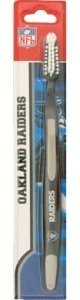 -. Binding : Misc. -. Brand : Siskiyou -. Feature : A great way to show off your team spirit! Our NFL Licensed toothbrushes have opposing angled bristles to reach between teeth with each forward and backward stroke. The extended tip accesses hard-to-reach areas of the mouth. -. ProductGroup : Sports -. ProductTypeName : SPORTING_GOODS -. Title : NFL FootballOakland Raiders Toothbrush