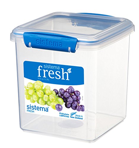 Sistema 921334 Fresh Collection Square Food Storage Container, Clear/Marine Blue
