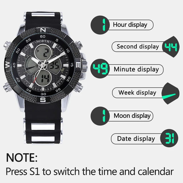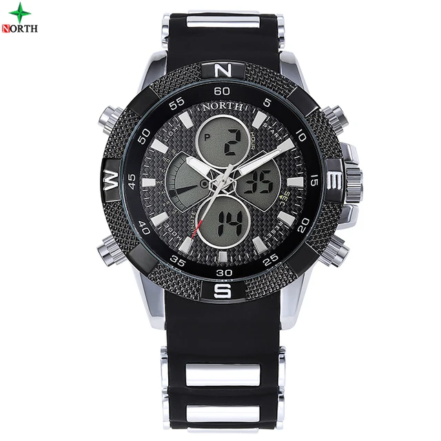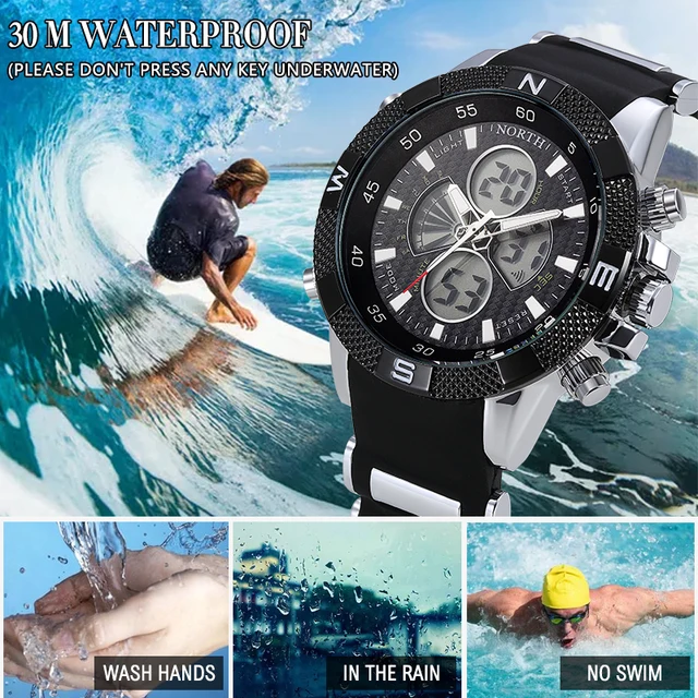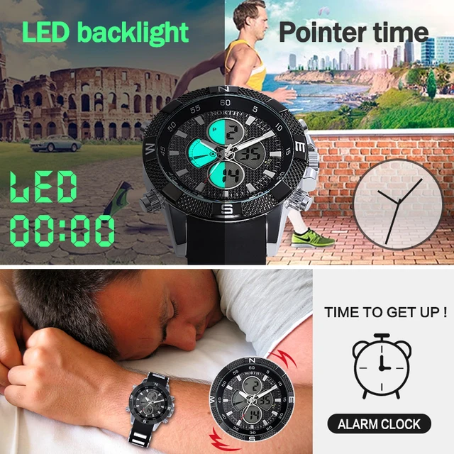| [해외] LED 디지털 남성 시계 30 메터 방수 듀얼 디스플레이 남성 스포츠 손목 시계 야외 군사 시계 캐주얼 남성 석영 손목 시계 |