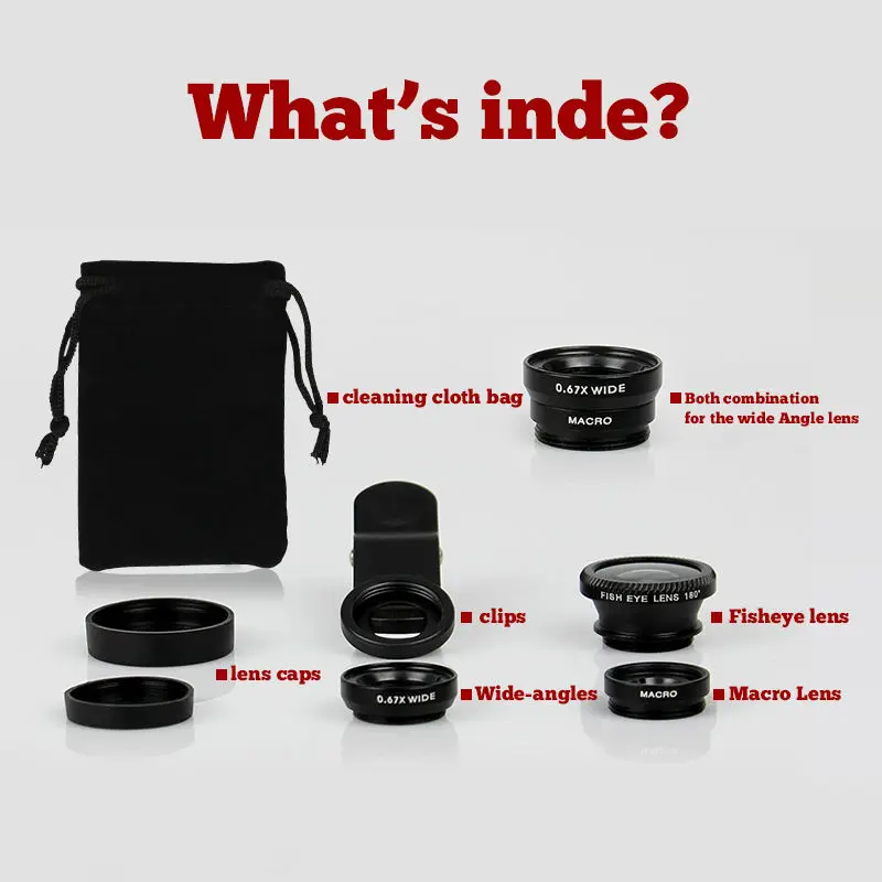 Package Includes:1 Universal Clip, 3 Lens, 1 Carring Bag