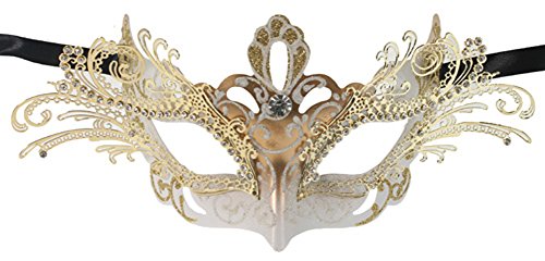 -. Brand : RedSkyTrader -. ClothingSize : One Size fits Most -. Department : womens -. Feature : Made of Paper Mache with Gold Laser Cut Metal Overlay / Mask Is about 7" Wide and 4" Tall / Metal Overlay Is about 10" Wide / Full Sized and Wearable for Costume Purposes / Perfect for Any Masquerade or Costume -. Label : RedSkyTrader -. Manufacturer : RedSkyTrader -. PackageQuantity : 1 -. ProductGroup : Apparel -. ProductTypeName : ADULT_COSTUME -. Publisher : RedSkyTrader -. Size : One Size fits Most -. Studio : RedSkyTrader -. Title : RedSkyTrader Womens Fairy Gold Laser Cut Mask
