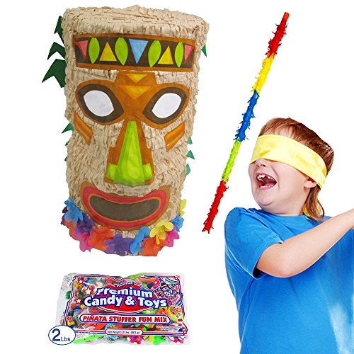 Studio : Pinatas Publisher : Pinatas Binding : Kitchen Product Description Kit includes 1 pinata, 2 lbs. Of candy, 1 buster stick and 1 bandana. Pinata measures 17 inches high by 15 inches wide by 9 inches deep. Perfect for birthdays or summer parties on the Hawaiian luau theme. Pinata filler includes 2 pounds of assorted candy such as tootsie rolls, bubble gum, lollipops and jawbreakers. 18" wooden stick is decorated with multicolored fringed-cut tissue paper. Pinata makes a fun party game, unique centerpiece decoration and exclusive photo prop pinata comes with strong cable tie at the top for hanging pinata and opening for adding fillers. 0