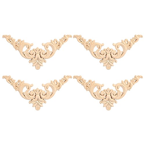 4Pcs Rubber Wood Carved Corner Onlay Applique Furniture Unpainted DIY Home Door Wall Cabinet Frame Decor 1212cm