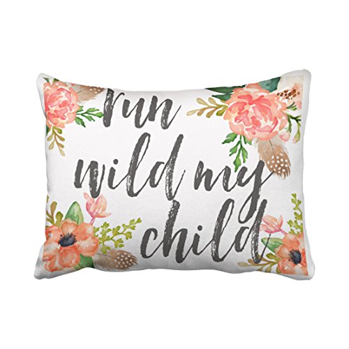 (Emvency)/Bedding Bath/Bedding/DIRECT FROM USA/Emvency Decorative Throw Pillow Cover Standard Size 20x26 Inches Run Wild My Child Boho Nursery...
