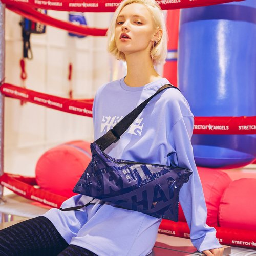 스트레치 엔젤스(STRETCH ANGELS) [L.P.Y] Diagonal logo SQ slim belt-bag (Dark blue)