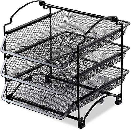 SimpleHouseware 3 Tier STACKABLE Desktop Document Letter Tray Organizer, Black