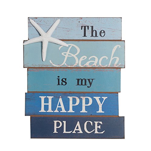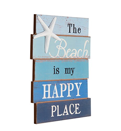 NIKKY HOME The Beach Is My Happy Place Rustic Wooden Wall Decorative Sign 8.5 x 12 Inches