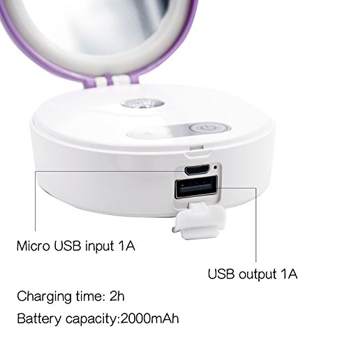- ❤️POWER BANK——with an output interface, this beauty mirror has an inbuilt 2000mAh battery (not big but enough FOR EMERGENCY)which can charge your phone anytime and anywhere.