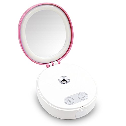 Facial Mist LED Mirror Powerbank 2000mAh USB Charger, Marggle 1A USB Output Portable Travel Battery Light Up Personal Makeup Mirror (Pink)