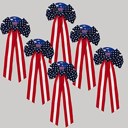 Patriotic Velvet Ribbons! 26"x12" Red White and Blue Starred Ribbons! (Star Bow Vertical Stripes 6pk)