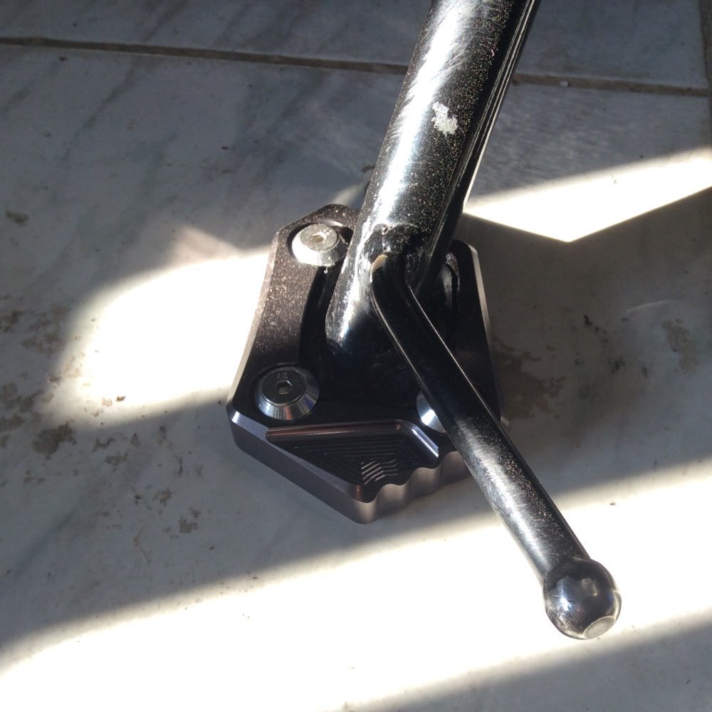 The area of contact with the ground increases and you can hang the side stand with confidence in an unstable place.
