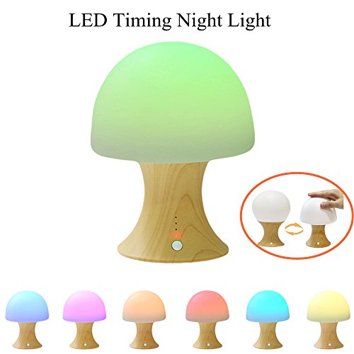 GLIME LED Night Lights Mushroom Timer Baby Kids Nightlight USB Rechargeable Bedroom Lamps Silicone Nursery Bedside Lights with Simulation Wooden Table Lamp for Children Gifts