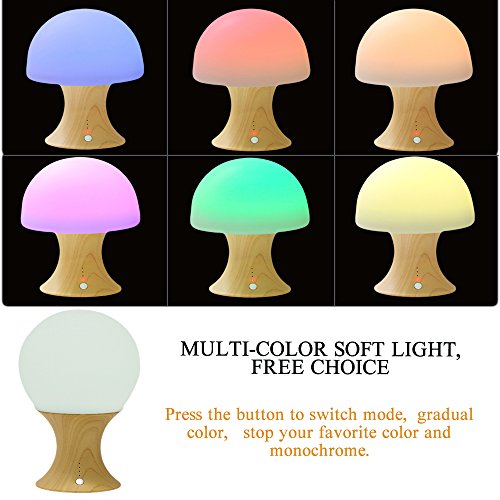 - ★ APPEARANCE: Silicone material, soft and lovely.Not only can be used as night lights but also be used as toys and decorations, silicone parts can become lovely mushrooms and other various shapes.Simulated wood as the base, making the lamp more like a mushroom.