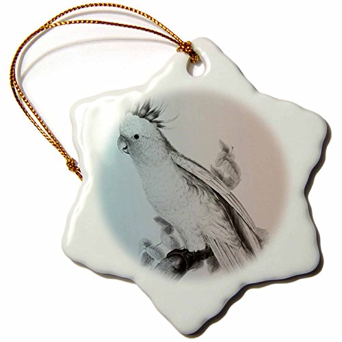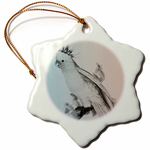 3dRose orn_123742_1 Pretty Cockatiel Bird Vintage Art Snowflake Ornament, Porcelain, 3-Inch
