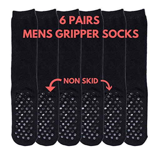 -. Title : Mens Gripper Slipper Socks, Non Skid Sock, Silicon Gripper Sole, Black Mens Tube Socks, 6 pair and 12 pairs packs