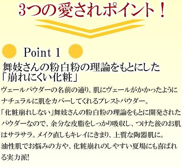 | 舞妓さんの粉白粉の理論をもとに開発されたパウダー。崩れにくく、メイク直しもキレイにきまります。 |