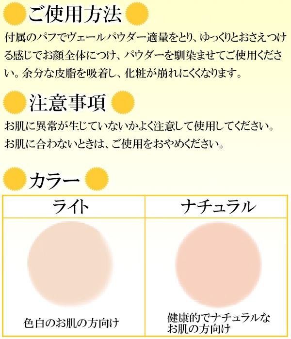 | 成分 | タルク、マイカ、ポリアクリル酸メチル、(スチレン/DVB)コポリマー、オクトクリレン、イソノナン酸イソトリデシル、ステアリン酸亜鉛、イリイソポルミチン、スクワラン、(+/-)酸化チタン、酸化亜鉛、酸化鉄、ジメチコン、メチコン |