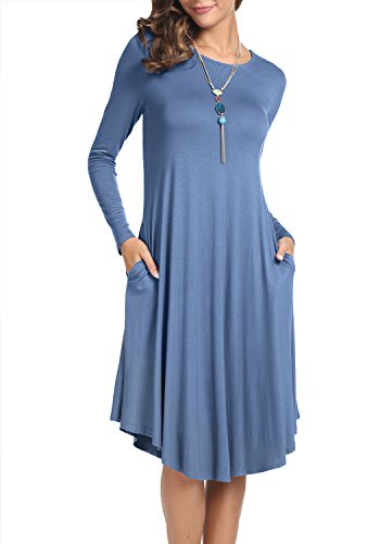 Levaca Women's Fall Plain O Neck Pockets Swing Loose Casual Midi Dress, in any single wear, or as a basic shirts,Have a good show in all seasons.