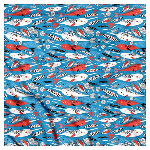 (Ambesonne)/Accessories/Cold Weather Accessories/DIRECT FROM USA/Narwhal Bandana by Ambesonne, Underwater Life Themed Whale and Bird Feather Illustration Colorf...