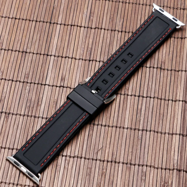 | [해외]남성 시계 스트랩 밴드 방수 부드러운 다이빙 블랙 실리콘 iwatch apple watch 38mm 군사 레드 라인 바느질 |