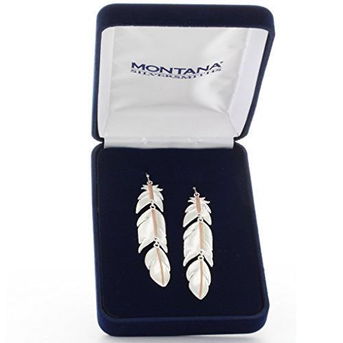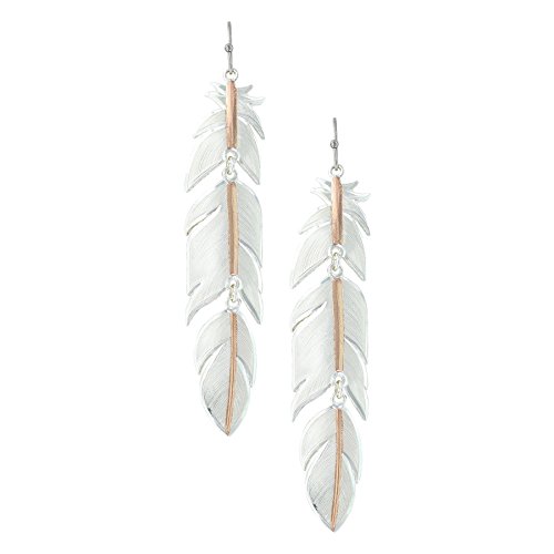 This dangle earring set features long plume feathers finished in silver and rose gold to highlight the intricately detailed engraving, bright rose gold finish runs down the shaft of the feather giving added depth to this piece. Three pieces are linked to form one long feather allowing these feathers to swing in a natural movement. The organic shape turn the extra long length into elegant, feminine accents, like silver and rose gold tendrils.Feature