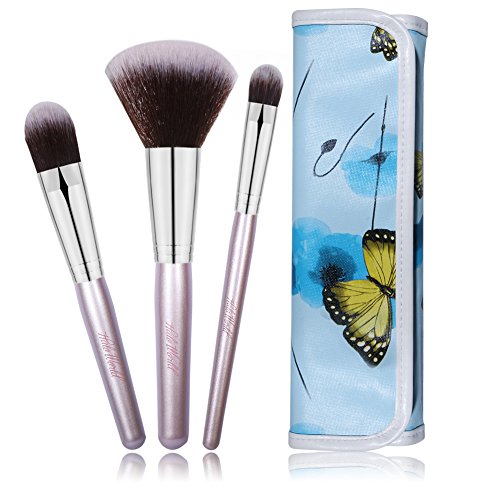 Halo World 10 Piece Makeup Brush Set Eye Face Foundation Blush Brush with Flower Pattern PU Case (purple)