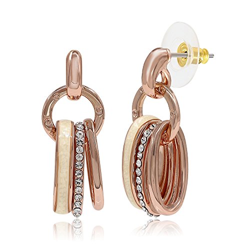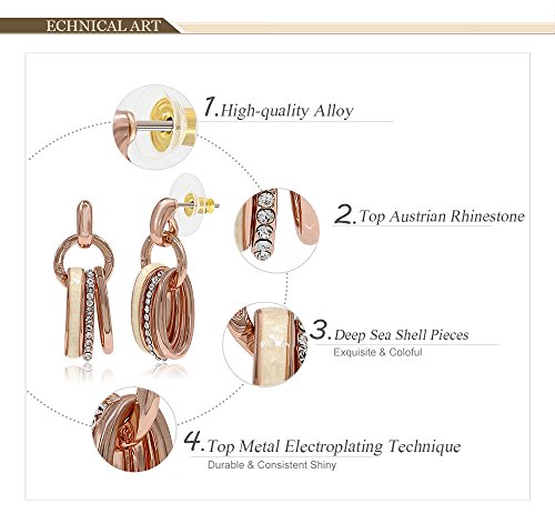 Unique and faddish, these rose gold plated earrings are made of pieces of hollow oval rings and studded with shell and crystals for decoration. They are perfect for daily dress.