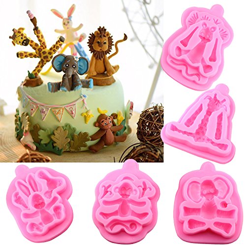 - The fondant molds color is pink,include 1 pcs elephant molds,1 pcs lion molds,1 pcs giraffe molds, 1 pcs monkey molds,and 1 pcs rabbit molds. cake decorating supplies with gift bags, this silicone molds has passed FDA inspection.