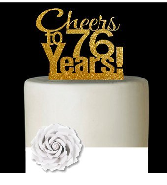 CakeSupplyShop Item#076CTA - 76th Birthday / Anniversary Cheers Super Gold Glitter Sparkle Elegant Cake Decoration Topper
