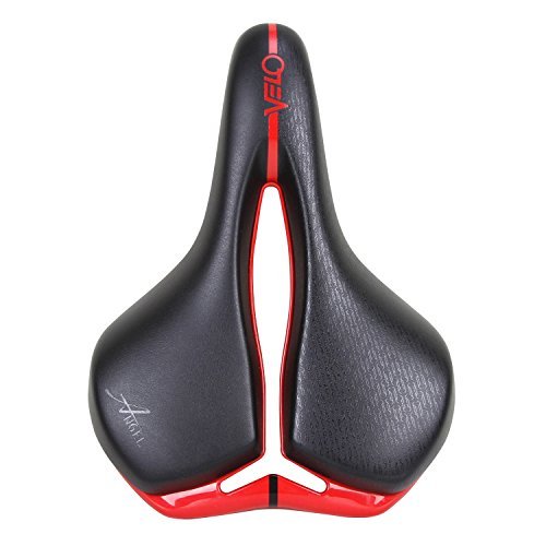 Velo Angel Series Black PU Leather Red Base Black Steel Rail Bicycle Seat Mountain Bike MTB Comforta