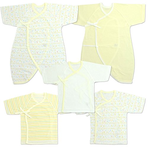 -. Title : 新生児肌着 5点セット クレヨン柄(短肌着3着,コンビ肌着2着)・日本製 クリーム