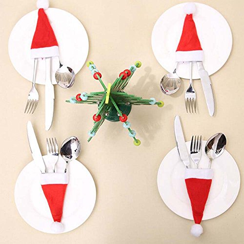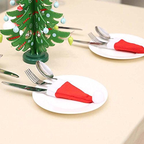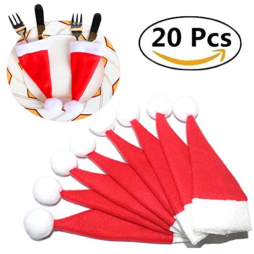 20 Pcs Christmas Caps Cutlery Holder Silverware Holders Santa Hat Cute Decoration (20 Pcs)