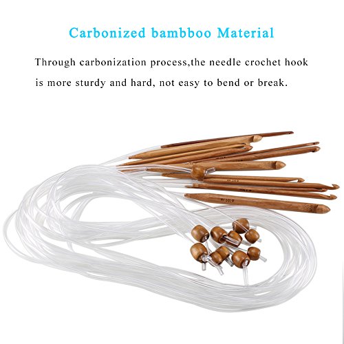 Carbonized Bamboo Crochet ManYee 12 Sizes Afghan Tunisian Crochet Hooks Set with Plastic Cable Bamboo Crochet Knitting Needles Hooks Kit Yarn Knitting Needles Set Scarf Blanket Garment