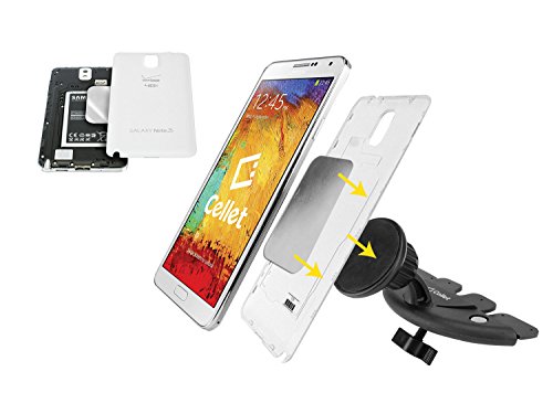 -. Binding : Wireless Phone Accessory -. Brand : Cellet -. Color : Black -. EAN : 0800768683602 -. Feature : 2 metal plates: one round plate for non-removable battery doors (stick onto back of phone), thin plate for removable battery doors (place in between battery and battery door) / CD Slot base with turn knob to firmly secure holder / Quick-snap technology allows your device to snap onto the holder instantly / Device can be positioned to any desired angle / Cradle-less, full accessibility to screen -. IsAutographed : 0 -. IsMemorabilia : 0 -. Label : Cellet -. Manufacturer : Cellet -. Model : 414686 -. MPN : 414686 -. PackageQuantity : 1 -. PartNumber : 414686 -. ProductGroup : Wireless -. ProductTypeName : WIRELESS_ACCESSORY -. Publisher : Cellet -. Studio : Cellet -. Title : Cellet Extra Strength Magnetic CD Slot Car Phone Holder for Samsung S5/S4/S3, Note 2/3, iPhone 4/4s/5 5s/5c - Black -. UPC : 800768683602