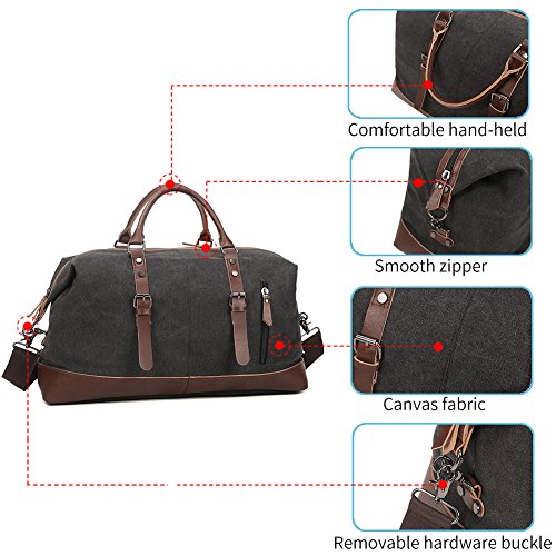 VINTAGE & DURABLE --- Made of a thick, 16oz top quality soft canvas and comfortable genuine leather woven fabric for tear- and rip-resistant strength, the durable bag offers reliable performance that stands up to everyday wear and tear. It can be carried on the hand or over the shoulder and smoothly opened and closed over and over without damage for its high-quality zippers.