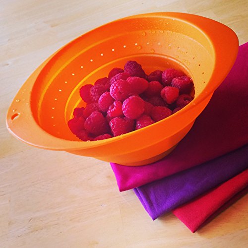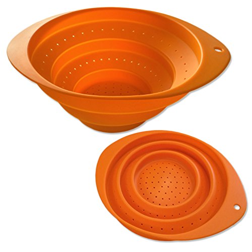 Smart 'n Small Collapsible Silicone Colander/Strainer - 100% Silicone - 1 QT - Orange