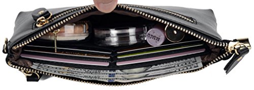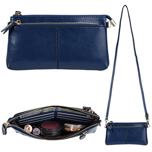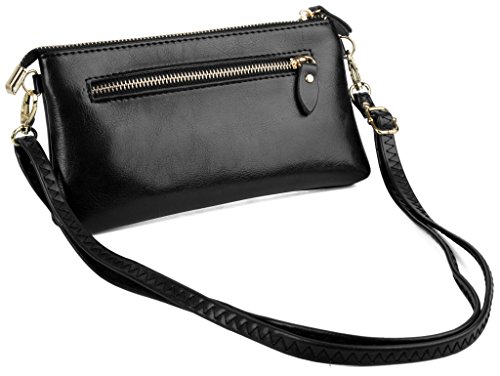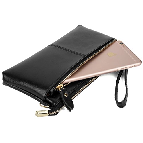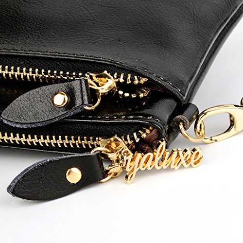 -. Feature : ATTENTION:Our company Yaluxe is now updating our brand and package from "Yahoho" to "Yaluxe" for better brand recognization,hence you may receive products tagged with either of them.---A clutch size purse made from Coated Leather(exterior) and PU leather(interior).3 compartments with a wrist strap and a shoulder strap for multipurpose carry. / Shiny Gold-color hardware, heavy duty zipper and detailed contrast stitching brightens up the wallet. / 3 compartments and 6 card slots in totall.Has an front snap pocket for IPhone 6 Plus,Samsung Galaxy S3/S4/S5/S6 and LG G3/G4 ,Samsung Note 2/3/4/5. / Triple compartments is designed for you to keep your cash, cards ,makeups,and smartphone oraganized well and easy to use. / Dimensions: 8.46"L x 4.52"H x 1"W.Comes with a PU shoulder strap(length up to 53.14") and a PU wrist strap.