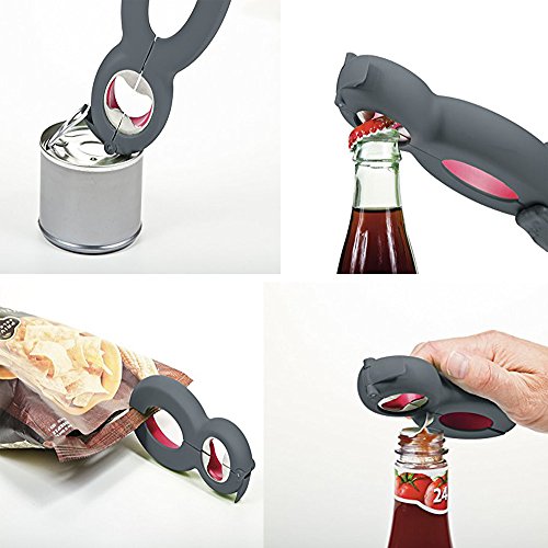 - Opens 6 different types of seals and lids: bags, safety seals, pull tabs, bottle caps, bottle tops, jar lids