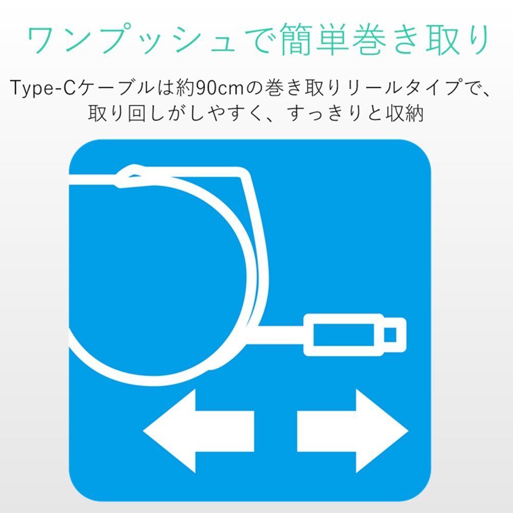 ■ USB Type-C cable is a take-up reel type of about 90 cm, easy to handle and can be stored neatly.