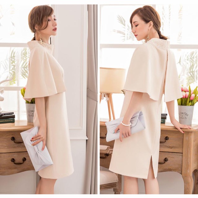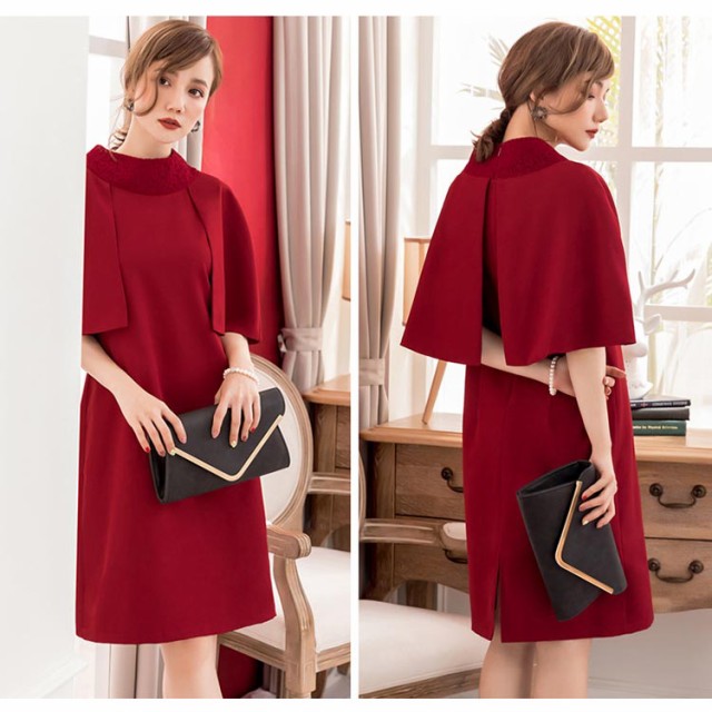 【S】バスト86cm/ウエスト76cm/ヒップ94cm/肩幅33cm/着丈94cm【M】バスト90cm/ウエスト80cm/ヒップ98cm/肩幅34cm/着丈95cm【L】バスト94cm/ウエスト84cm/ヒップ102cm/肩幅35cm/着丈96cm【XL】バスト98cm/ウエスト88cm/ヒップ106cm/肩幅36cm/着丈97cm【XXL】バスト102cm/ウエスト92cm/ヒップ110cm/肩幅37cm/着丈98cmカラー アプリコット、グレー、ネイビー、レッド素材 ポリエステル商品詳細 ◆伸縮性 なし◆透け感 なし◆裏地 ありモデル情報 身長:165cm 体重:45kgバスト:80cm ウエスト:60cm ヒップ:84cm着用サイズ:S
