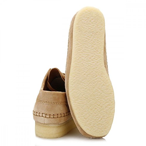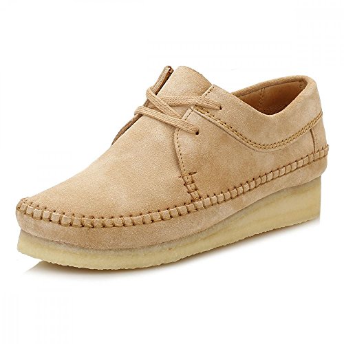Binding : Apparel Product Description The new Clarks Weaver is a mocassin style shoe with stand-out whip-stitch detailing and iconic Clarks logo tag. These shoes are crafted from a premium soft suede with a lace up fastening and feature a distinctive contrasting crepe sole 0
