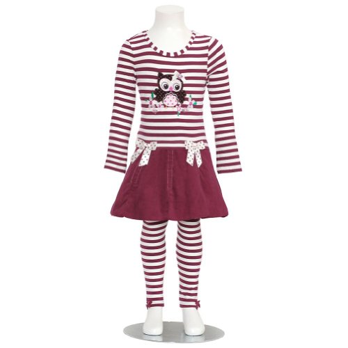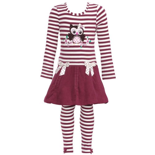 -. Title : Bonnie Jean Girls Corduroy Owl Dress & Legging Outfit, Burgundy, 12M - 24M