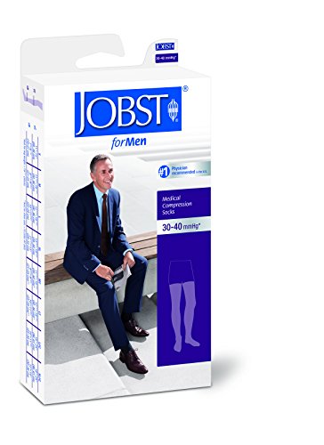 BSN Medical 115414 JOBST for Men Compression Hose, Thigh High, 30-40 mmHG, Closed Toe, Large, Black
