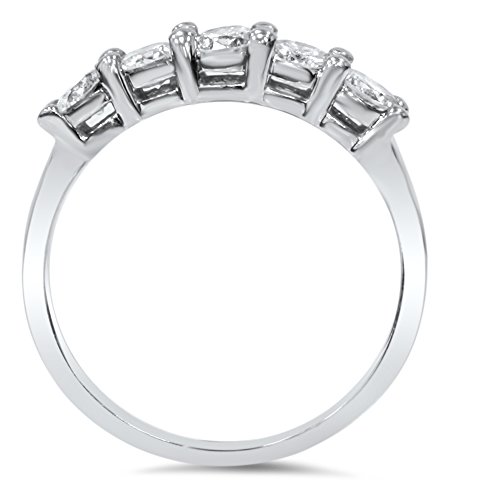 - Title : 1 Carat Five Stone Genuine Round Diamond Wedding Anniversary Ring 14K White Gold