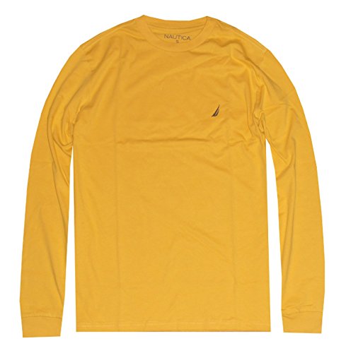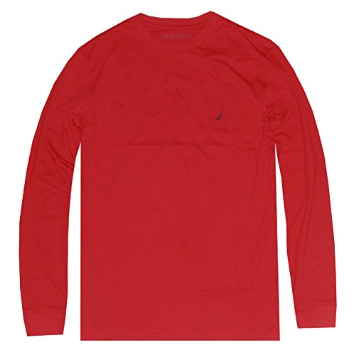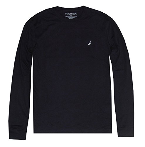NAUTICA Men's Long Sleeve Solid Crewneck Logo T-Shirt
