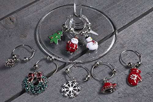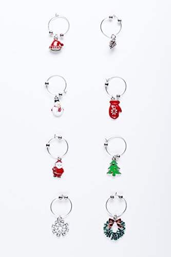 -. Title : Cork & Leaf Christmas Holiday Wine & Champagne Glass Charms - Set of 8 Rings with Sateen Storage Bag