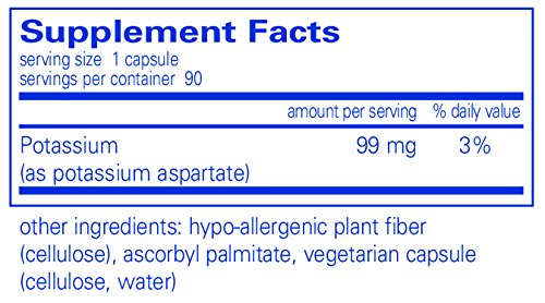 Studio : Pure Encapsulations Publisher : Pure Encapsulations Binding : Health and Beauty Product Description Potassium activates many enzymatic reactions and is essential to a number of physiologic processes, including transmission of nerve impulses; contraction of cardiac, smooth, and skeletal muscles; gastric secretion; renal function; tissue synthesis; and carbohydrate metabolism. Potassium is the major cation of intracellular fluid and is essential for maintenance of acid-alkaline balance, isotonicity, and electrodynamic characteristics of the cell. In addition, it works with sodium to maintain healthy water balance, heart rhythm, and nerve and muscle function. 0