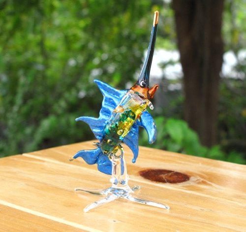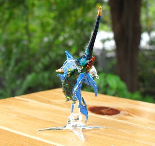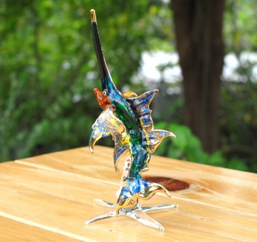 - Feature : Handmade Swordfish Art Glass Blown Sea Animal Figurine / Great gift for your friend's birthday, holiday greeting gift or decoration stuff / Special design with handmade & handpainted work. The items are not come from china. All of them are made by artisan of Thailand. / Made with high quality glass and outstanding detail as you can see in picture / Measures L 1.5 inches X W 1 inches. X H 4 inches. Since it is handmade work so it may has a little different detail from picture.