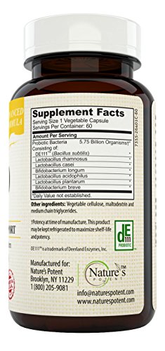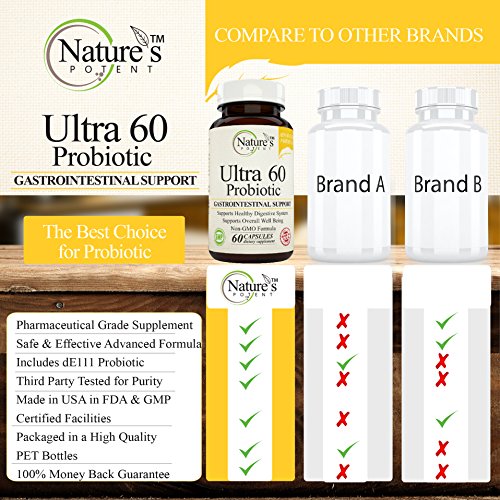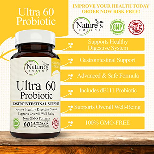 Nature's Potent - Ultra 60 Probiotics for Digestive Health, Dietary Supplement for Men & Women, 60 Veggie Capsules