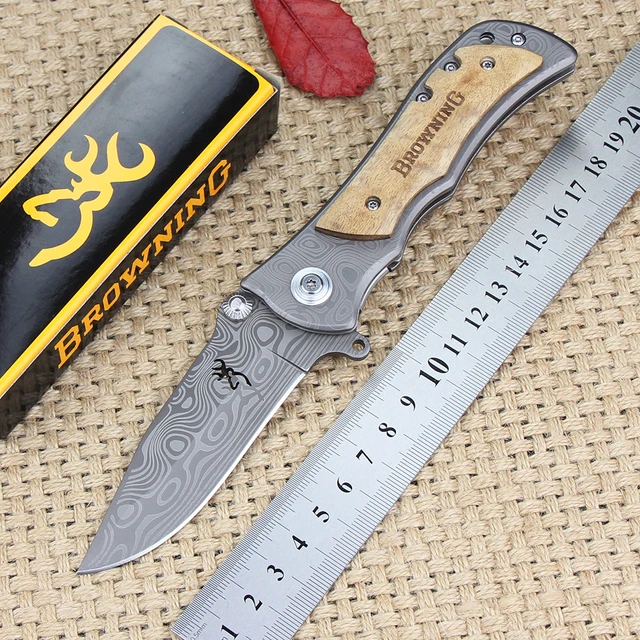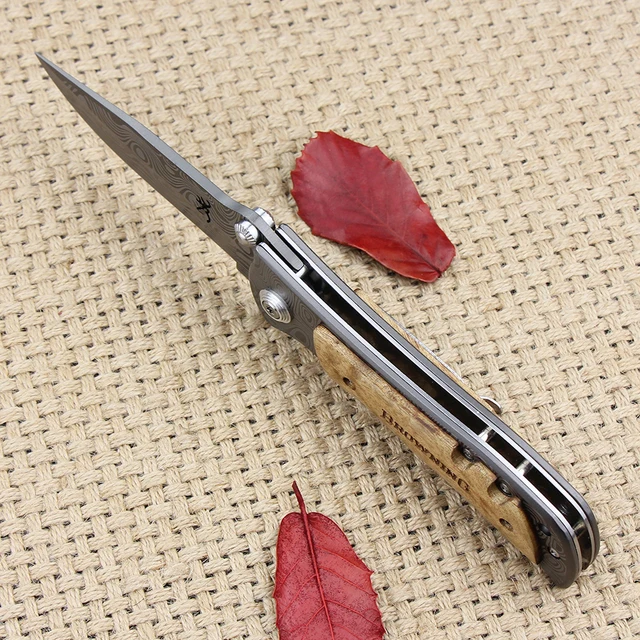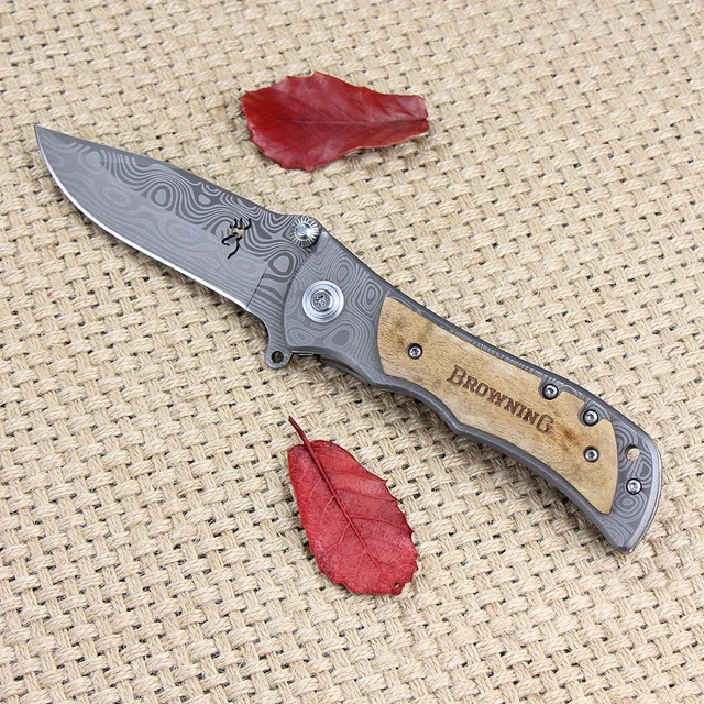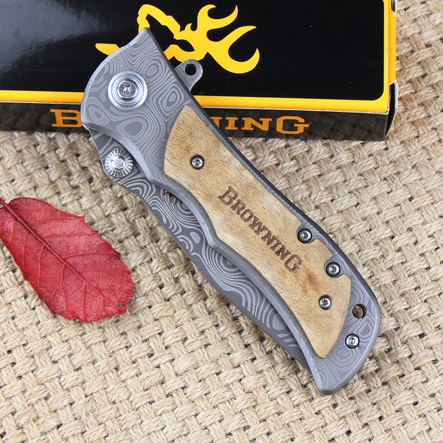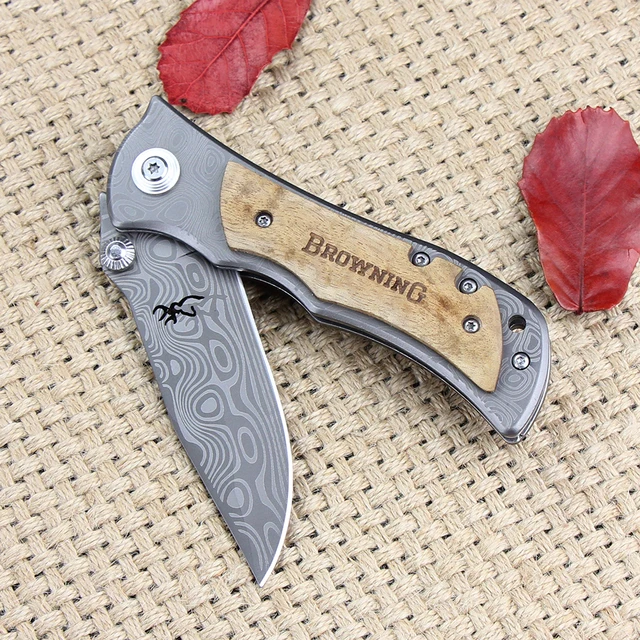 | [해외] 브라우닝 339 접이식 포켓 나이프 440C 스틸 다마스커스 표면 멀티 전술 생존 칼 야외 전투 유틸리티 사냥 도구 |